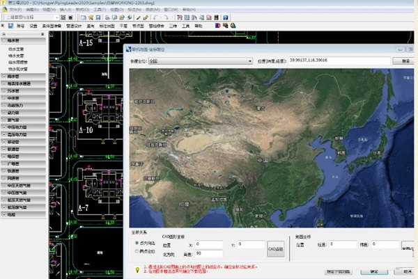 管线采用二三维一体化的设计方式,平面视图管线表现为二维方式,转换视角,管线表现为三维方式,可以直观查看管线与周围地形、地物、建构筑物的关系。