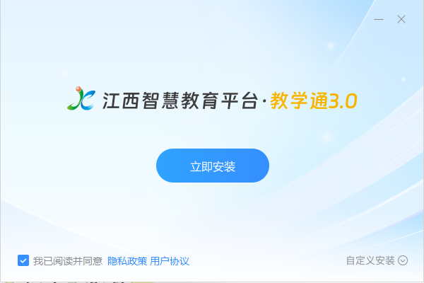 3.双击打开,进入赣教云教学通3.0软件界面,选择目的地位置,软件将被安装到以下列出的文件夹中,要选择不同位置,建入新的路径,点击立即安装