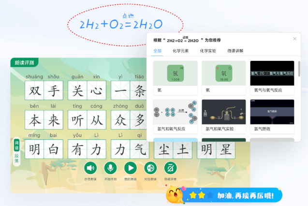 1、AI教学工具:课堂如影随形的小帮手,贴合教学重难点,提供中英文评测,划词搜索等教学工具,解决老师学科化教学难点,助理新型教学模式,促进课堂高效教学。