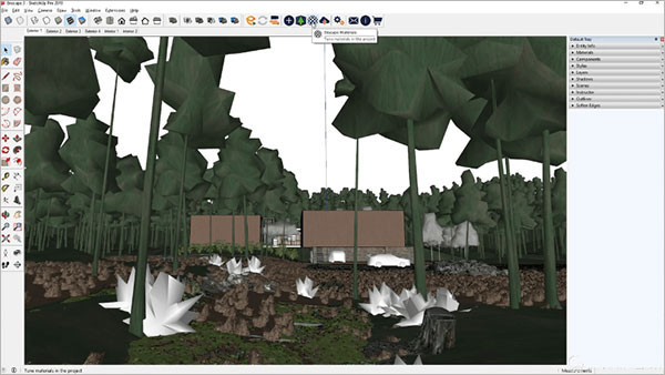 可以自动识别 SketchUp 中的草地材质,在渲染视窗中看到的就是真实的三维草地,对环境图的表现力大幅度提高。