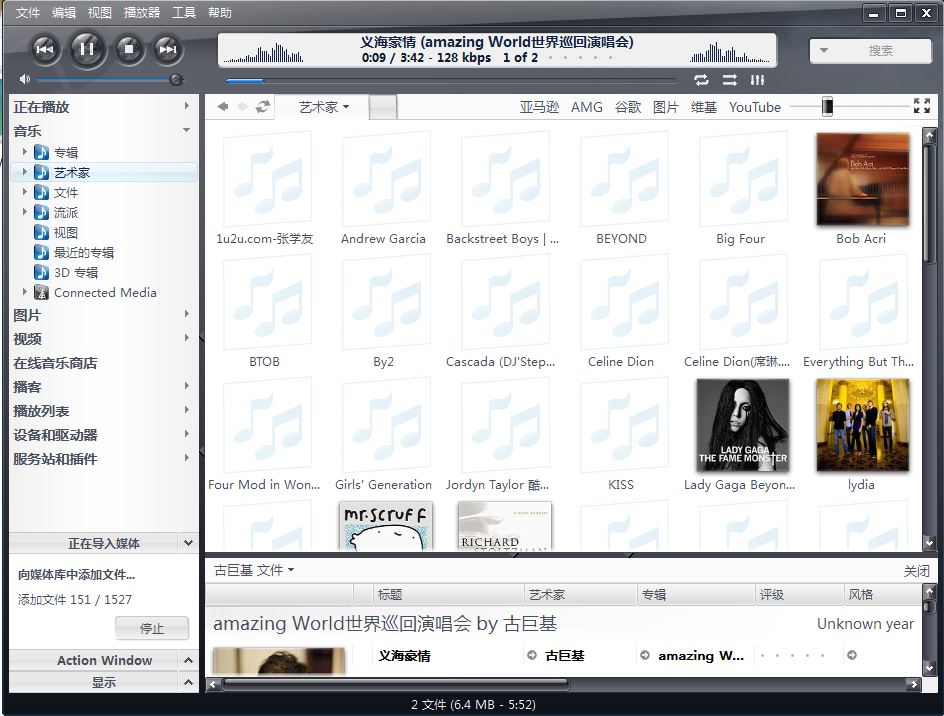 3、可以群组的方式来管理你的档案,以演唱者、专辑、播放列表或是种类来分组。