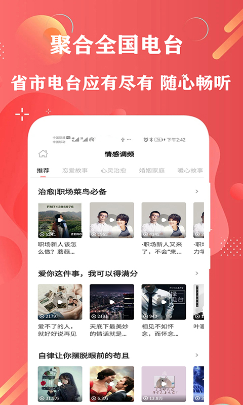 这里汇聚了音乐、情感、财经、相声、戏曲、娱乐、广播剧、资讯、电影、脱口秀、听书、两性、人文历史、健康养生、生活故事....内容丰富的电台节目;一应俱全,集合近千家全国广播电台和字媒体于一体的娱乐收听综合性广播平台!