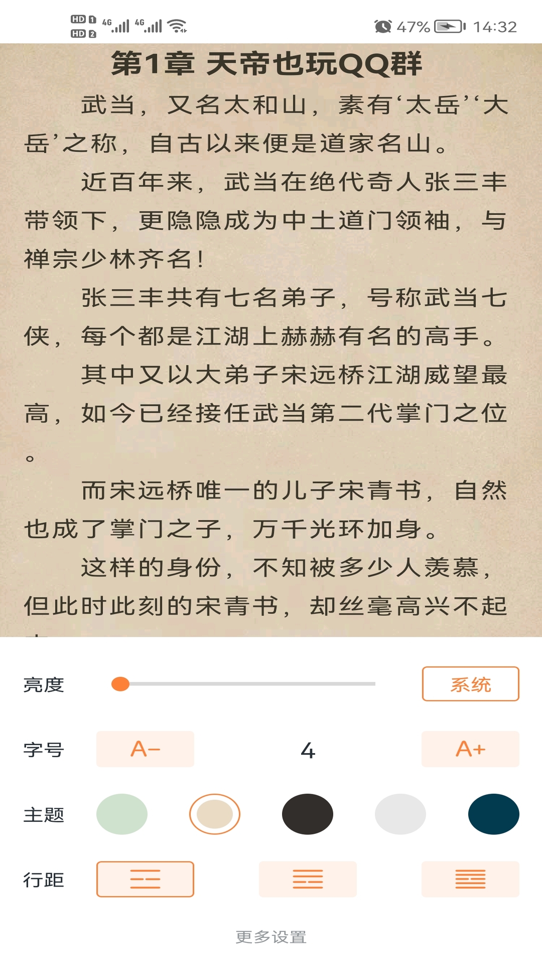 -多种阅读主题界面,全屏沉浸式阅读等体验效果;