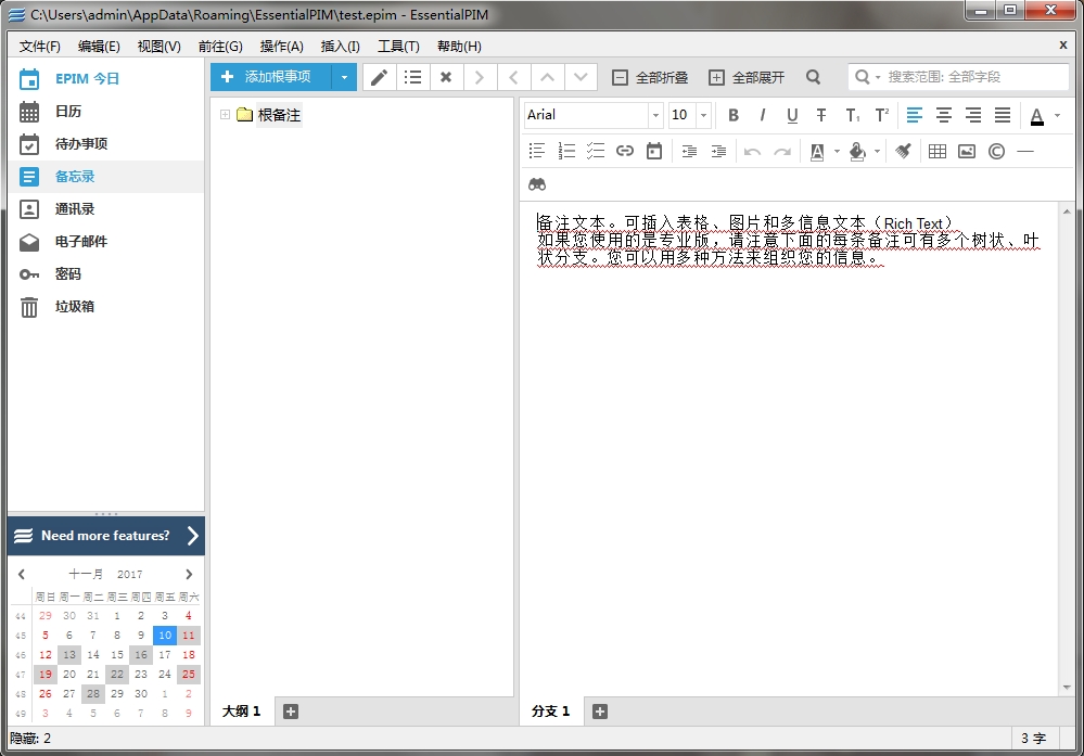 1.完全免费: EssentialPIM Free无使用时间或功能限制。