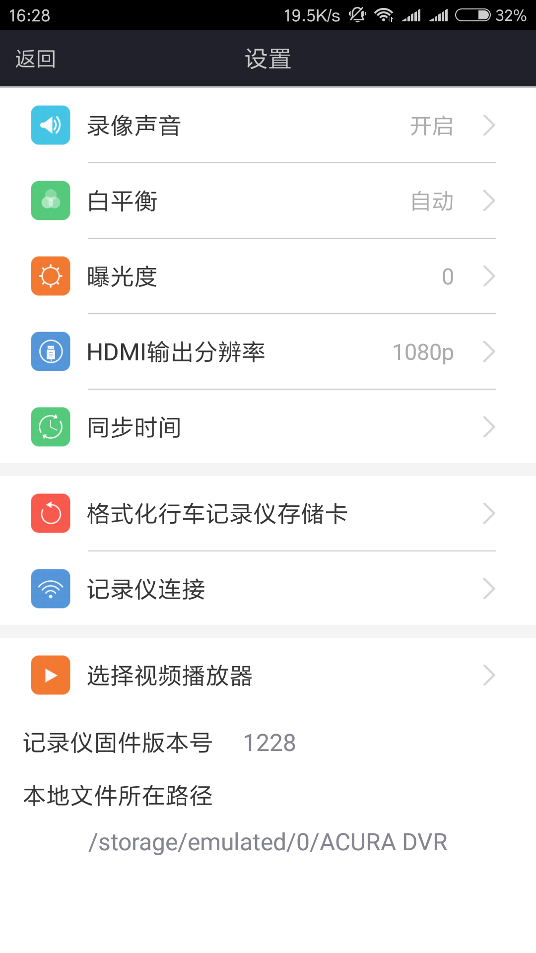 5、配置行车记录仪参数,如白平衡及HDMI输出等