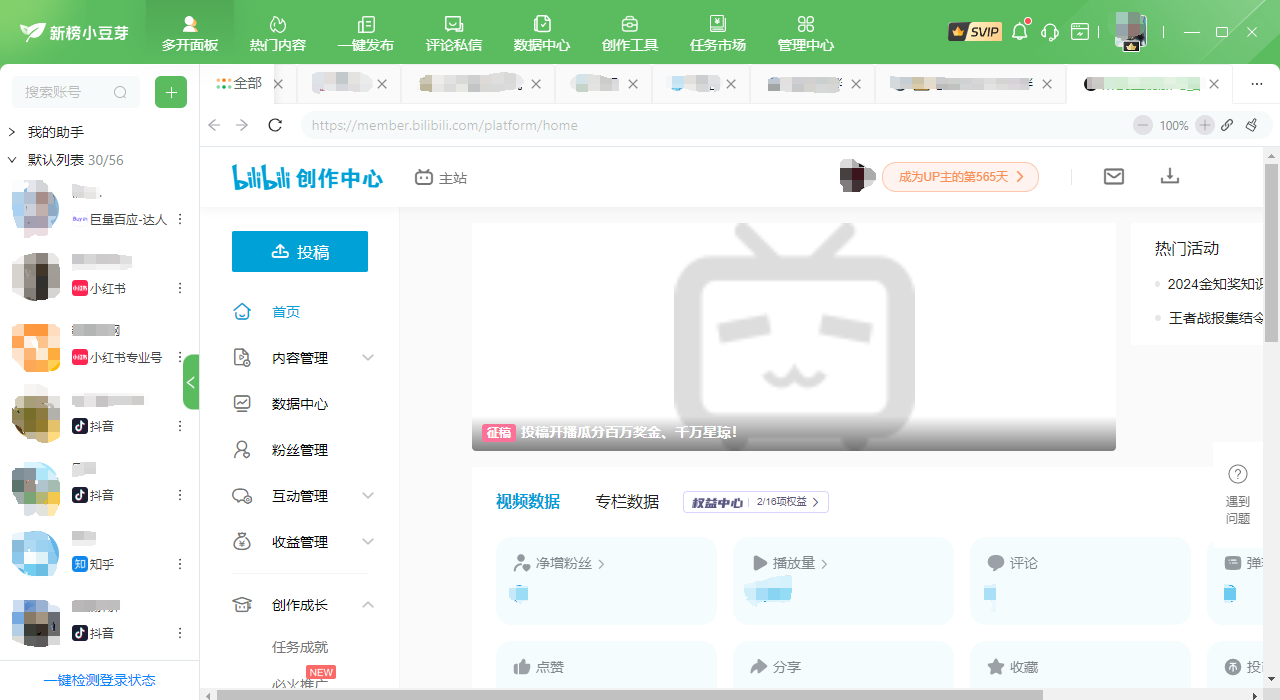 1、账号管理:一站式管理50+平台账号,支持多开及一键发布。