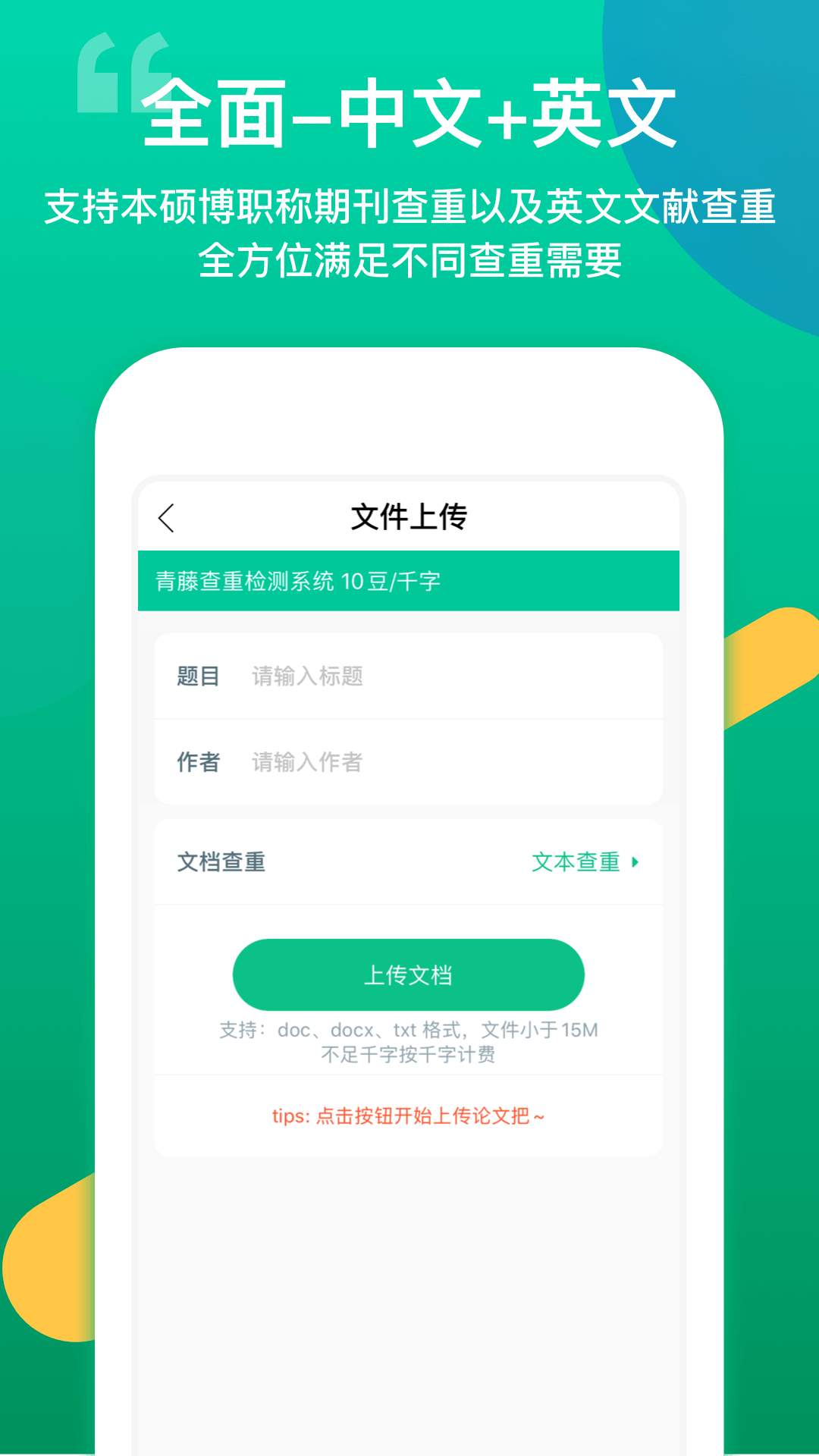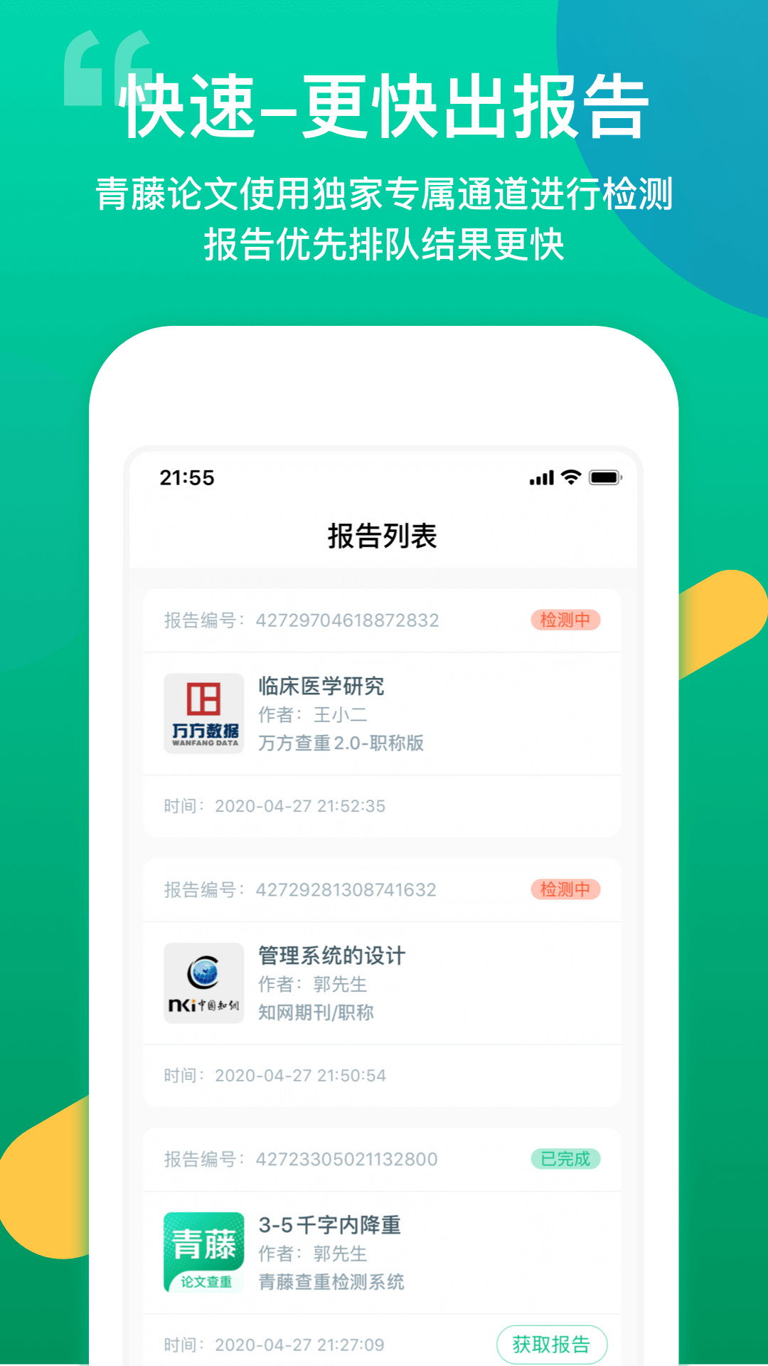 无论是毕业设计、毕业论文、学术论文、知网维普万方论文、爱学术人士等,都可通过青藤论文查重APP进行查重检测降重,青藤将为您提供便捷、专业、安全的论文查重服务,助力您有效提高论文通过率。
