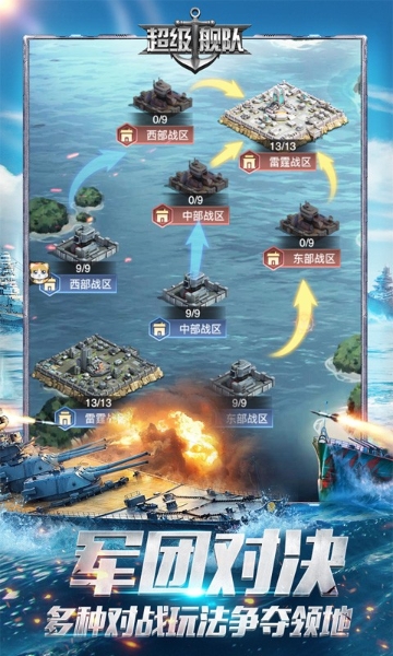 3、超强PVP与团体对抗:超级舰队支持军团战、世界战等多种玩法,与全球玩家一决高下。