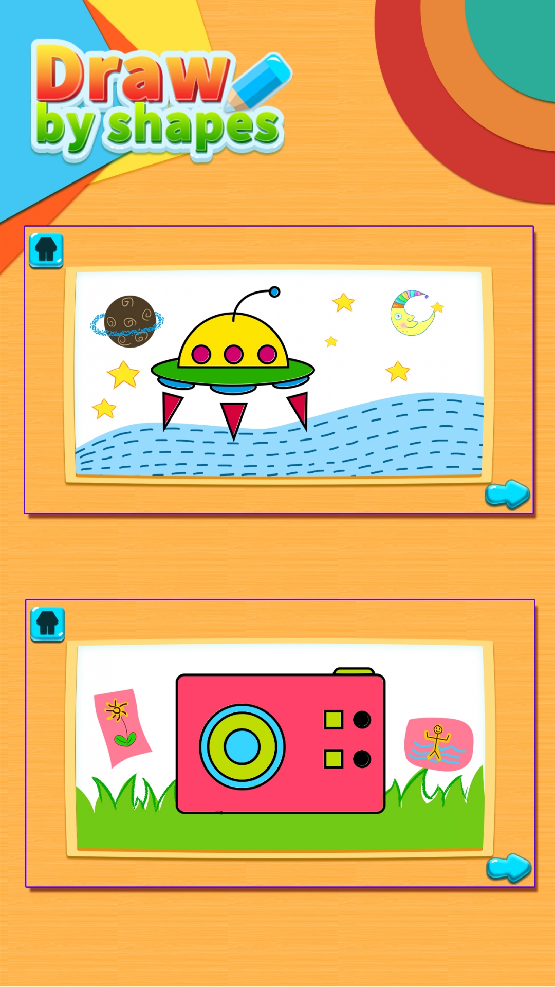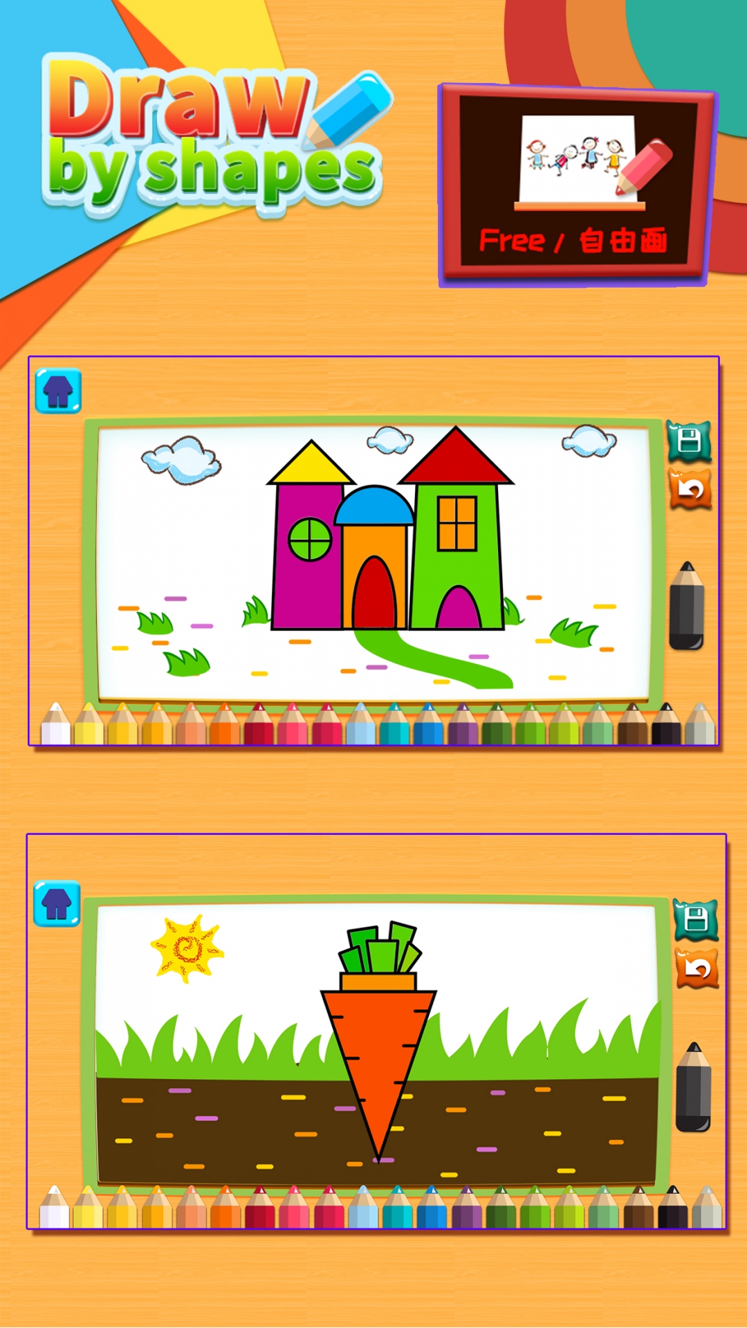 枯燥的几何形状变为有趣可爱的形状画,让每个孩子都轻松学习,体验绘画的无限乐趣!