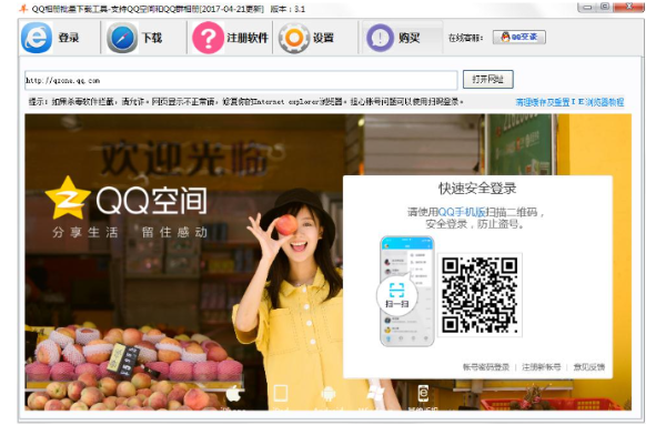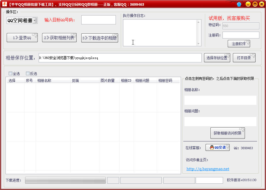 1、批量下载相册:羊羊QQ空间相册批量工具支持快速批量下载自己的或他人的QQ空间、QQ群相册,并能处理知道密码的加密相册。