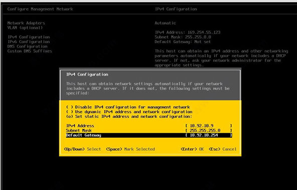 6、按 F2 进配置 → Configure Management Network → IPv4.填好管理地址并保存。