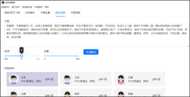 2、AIGC内容生成:软件集成AI文案生成、AI图文创作及真人语音库,可快速生成原创视频配音与图文内容。