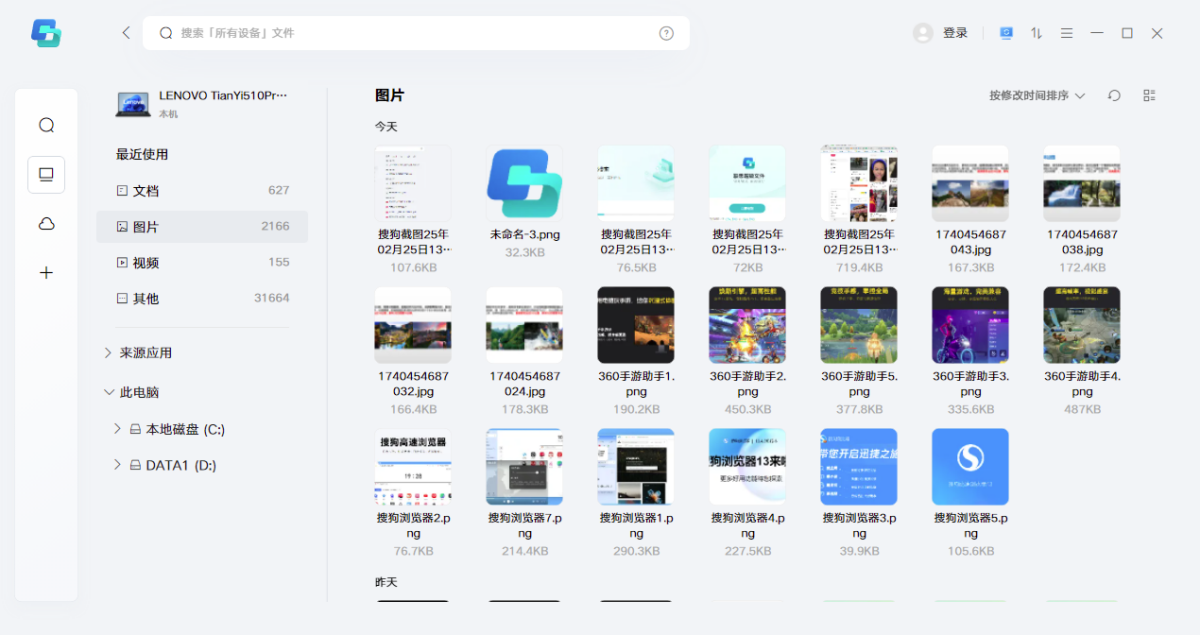 联想超级文件官方版是一款好用的跨平台文件管理软件。联想超级文件用户无需数据线即可随时随地访问不同设备上的重要资料,轻松实现跨平台文件的无缝传输与备份,支持跨设备进行文件搜索,能够实时匹配并定位目标文件,快速找到所需内容;联想超级文件让用户能够高效地统一管理电脑、手机、平板等多个终端的文件。