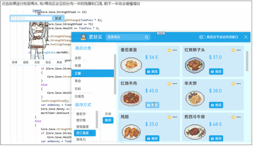 2、打工学习赚钱:让桌宠进行“文案”或“直播”等打工活动来赚取金钱,用于购买物品。