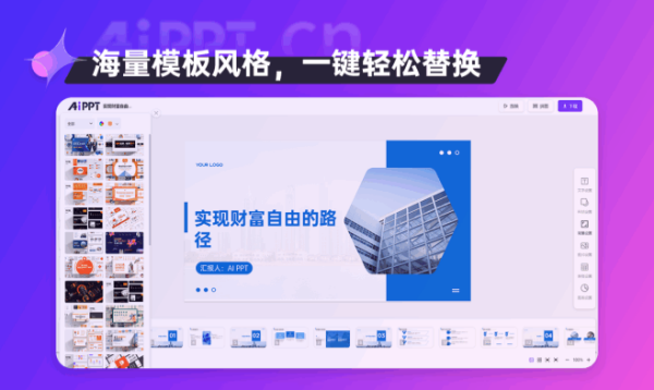 AiPPT官方版是一款功能强大的AI驱动幻灯片生成工具,用户只需输入主题或简单描述,即可一键生成包含思维导图、数据图表等元素的高质量、专业级PPT文档。AiPPT内置超过10万级的定制模板与丰富素材,并提供强大的在线编辑功能,支持制作、保存与分享。AiPPT便捷高效,将复杂的设计过程简化为智能对话,极大地节省了用户的时间和精力。