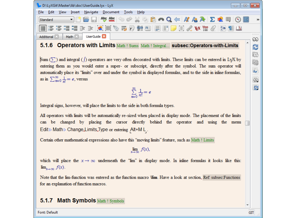 2、专业数学排版:LyX内置集成的方程编辑器和数学工具栏,支持可视化和LaTeX命令输入,能轻松制作复杂的数学公式。