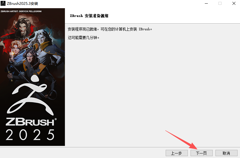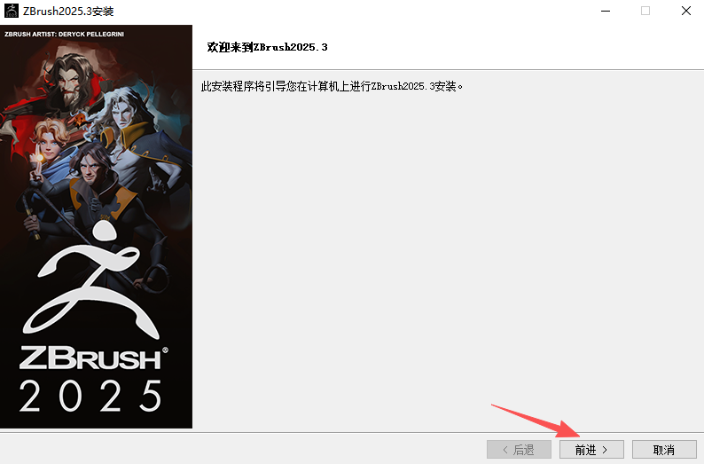 1、在本站下载Pixologic Zbrush2025压缩包并解压,双击运行后,默认选择简体中文,点击确定。