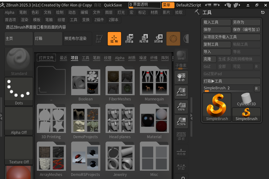 3、便捷文件管理:Pixologic Zbrush2025内置“灯箱”浏览器,支持快速访问本地ZBrush文件,便于管理和调用资源。