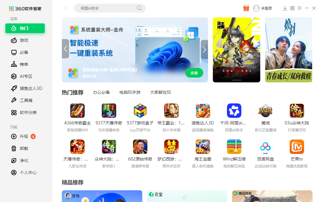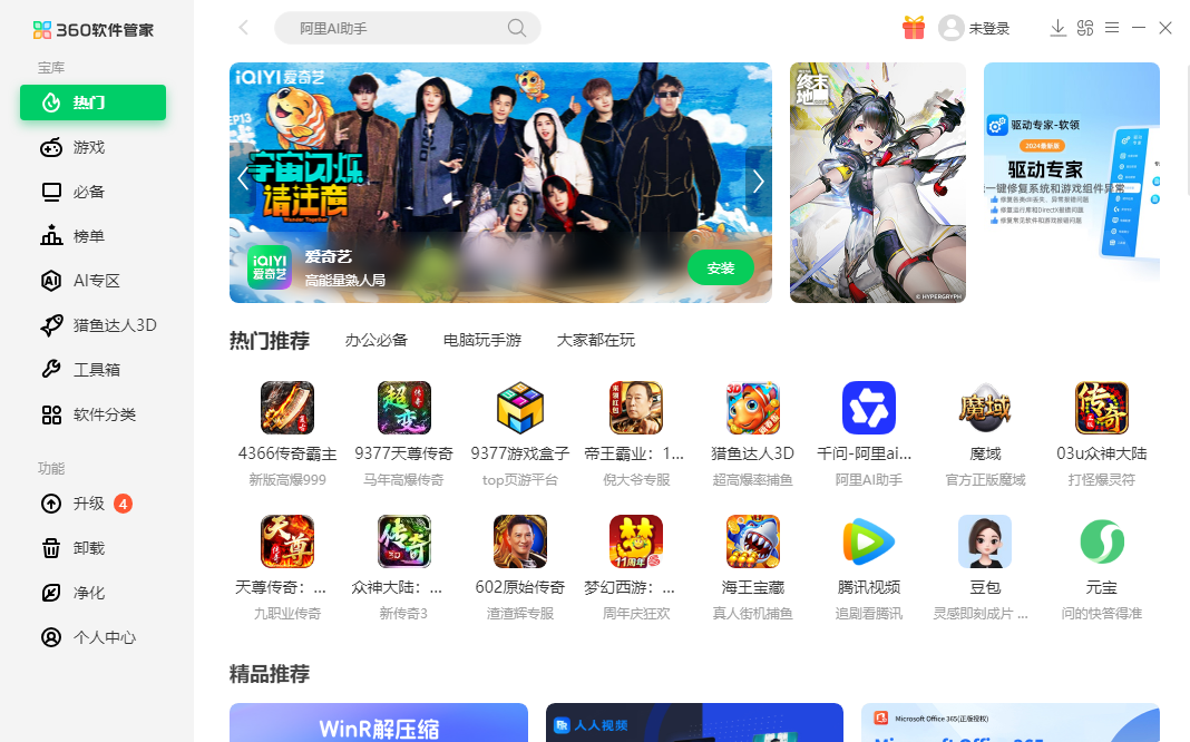 360软件管家以“纯净无扰、智能高效”为核心,360软件管家打造一站式软件管理体验。无弹窗广告和捆绑插件,内存占用降低70%,让老旧电脑焕新。AI智能推荐引擎精准匹配需求,一键无痕卸载可深度清理30%冗余空间。集成安全防护,实时拦截带毒驱动,云端备份实现3分钟系统重生。360软件管家支持跨设备协同办公和游戏性能优化,让软件管理简单可靠,节省维护时间,实现“装软件不冒险,管电脑不费力”。