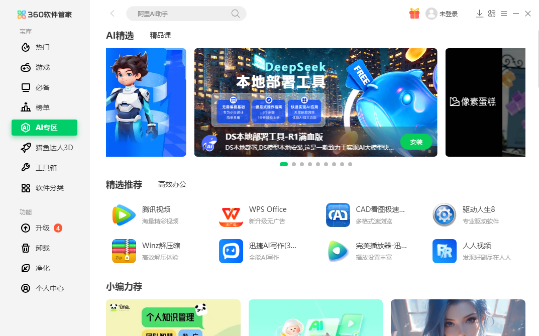 3、AI专区助您事半功倍:360软件管家提供的AI专区包含了当下最热门的AI软件与各种各样实用的AI功能