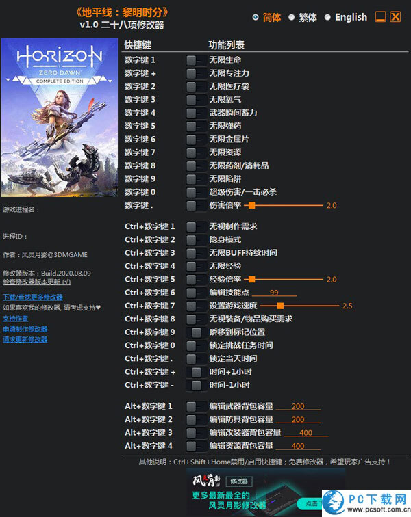 在末日后的机械巨兽世界,少女埃洛伊用弓箭与潜行揭开身世之谜,探索开放世界并狩猎机械生物。地平线黎明时分二十八项修改器是风灵月影为地平线黎明时分游戏打造的一款非常实用的游戏辅助工具。地平线黎明时分修改器提供无限生命、无限弹药和超级伤害等功能,助你轻松探索开放世界,畅享战斗与资源收集的极致体验。