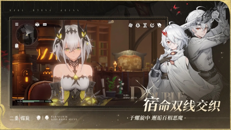 二重螺旋游戏以“命运之螺旋”濒临崩溃的阿特拉西亚大陆为背景,在神明沉默、恶魔哀嚎的终焉时代,两位背负对立宿命的主角被卷入“命运之螺旋”,于深渊与光明的夹缝中,携手恶魔少女斩断既定轨迹,为种族争夺存续的黎明。