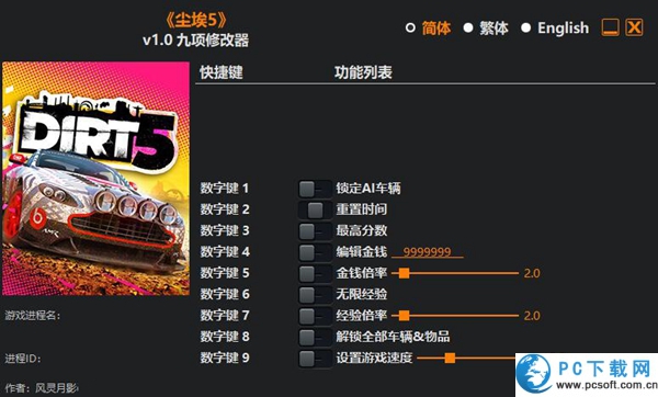 尘埃5是一款以极限赛车为核心,提供多样化赛道和激烈多人竞速体验的街机风格赛车游戏。尘埃5九项修改器是风灵月影为尘埃5游戏打造的一款非常实用的游戏辅助工具。尘埃5单机修改器提供锁定AI、无限金钱、解锁全车辆等核心功能,大幅优化游戏进程与资源获取体验,助您畅享竞速乐趣。