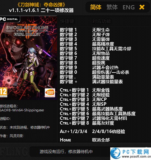 刀剑神域夺命凶弹二十一项修改器