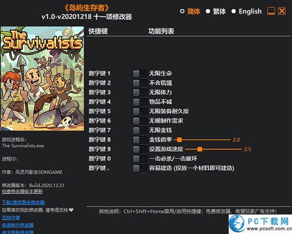 岛屿幸存者是一款沙盒生存游戏,玩家需在荒岛探索、建造并驯养猴子助手,协力对抗环境威胁生存下去。岛屿幸存者十一项修改器是风灵月影为岛屿幸存者游戏打造的一款非常实用的游戏辅助工具。岛屿幸存者修改器提供无限生命、无限金钱、一击必杀等核心功能,大幅简化生存挑战,让玩家尽情探索创造,享受无忧游戏乐趣。