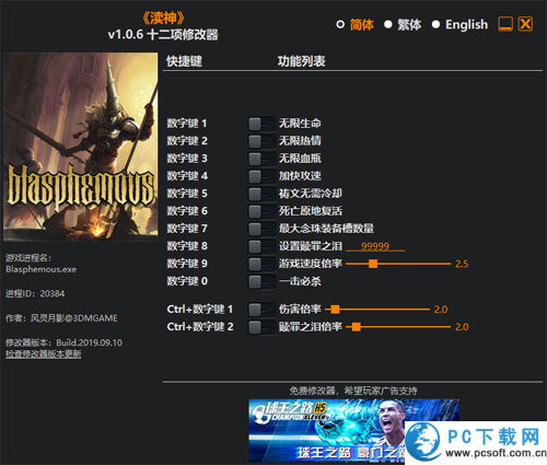 渎神是一款哥特风横版动作游戏,玩家扮演苦痛奇迹中的忏悔者,在残酷世界中探索、战斗并揭开扭曲信仰的真相。渎神十二项修改器是风灵月影为渎神游戏打造的一款非常实用的游戏辅助工具。渎神修改器提供无限生命、无限热情、无限血瓶等核心功能,大幅降低游戏难度,增强战斗爽快感,让玩家轻松探索剧情。