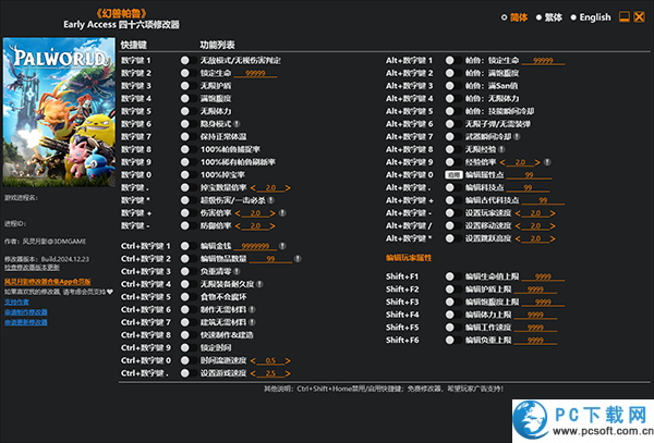 幻兽帕鲁是一款融合开放世界探索、生存建造与帕鲁驯养战斗的多人合作沙盒游戏。幻兽帕鲁四十六项修改器是风灵月影为幻兽帕鲁游戏打造的一款非常实用的游戏辅助工具。幻兽帕鲁单机修改器提供无敌、满资源、秒捕捉等核心功能,大幅简化生存与养成环节,让玩家专注探索与战斗乐趣。