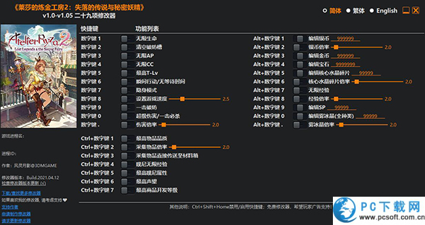 少女莱莎在炼金与冒险中成长,融合探索、合成与战斗的日式RPG。莱莎的炼金工房2修改器是风灵月影为莱莎的炼金工房2游戏打造的一款非常实用的游戏辅助工具。莱莎2修改器提供无限生命、一键清空破防槽、无限AP等核心功能,大幅简化战斗与养成流程,助你畅享轻松探索与极致炼金体验。