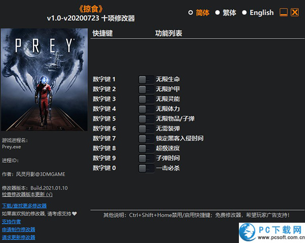 在空间站对抗外星生物,通过变形伪装与环境互动解谜求生。掠食游戏修改器是风灵月影为掠食游戏游戏打造的一款非常实用的游戏辅助工具。掠食修改器提供无限生命、护甲与子弹,解锁无敌战斗体验,助你畅游塔洛斯一号空间站,无需担忧资源与生存压力。