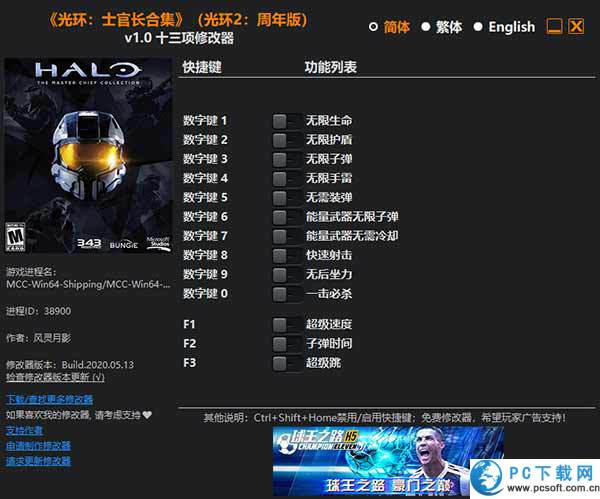 3、“超级跳”注意有可能会出现摔落伤害,请配合无限生命或无限护盾使用。