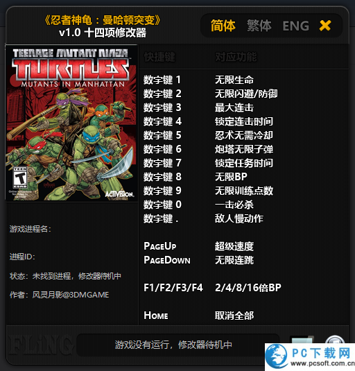 玩家操控四只忍者神龟在曼哈顿对抗敌人,体验合作战斗与自由探索的开放世界动作游戏。忍者神龟曼哈顿突变修改器是风灵月影为忍者神龟曼哈顿突变游戏打造的一款非常实用的游戏辅助工具。忍者神龟:曼哈顿突变修改器提供无限生命、一键必杀、超级速度等核心功能,大幅降低游戏难度,让玩家享受割草快感与自由探索的乐趣。