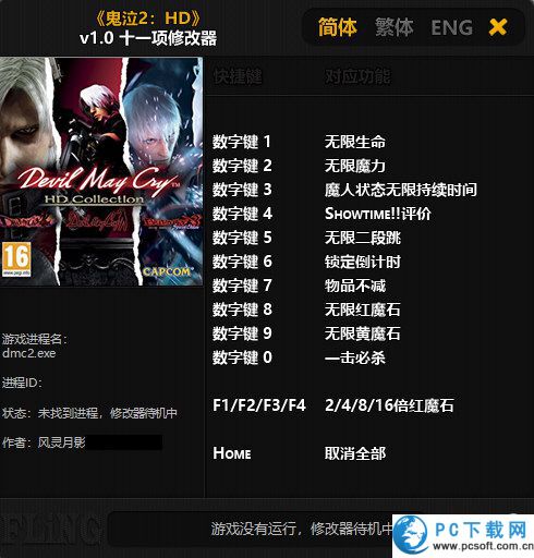 鬼泣2以恶魔猎人但丁为主角,在都市与魔界中战斗,核心玩法是华丽连招与武器切换的砍杀动作游戏。鬼泣2HD十一项修改器是风灵月影为鬼泣2游戏打造的一款非常实用的游戏辅助工具。鬼泣2修改器提供无限生命、魔力及魔人状态,大幅降低游戏难度,让玩家轻松体验华丽战斗与剧情探索。
