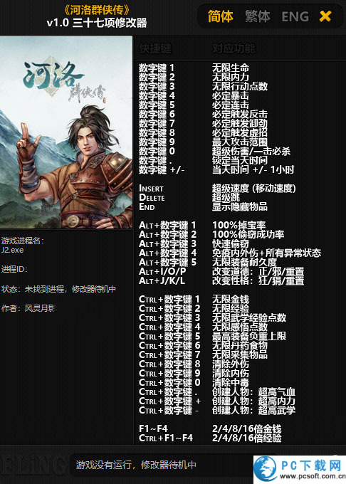 河洛群侠传是一款以金庸武侠为背景的开放世界角色扮演游戏,玩家可自由探索、习武、结交侠客并体验多线剧情。河洛群侠传三十七项修改器是风灵月影为河洛群侠传游戏打造的一款非常实用的游戏辅助工具。河洛群侠传修改器提供无限生命、超级伤害、一键清除异常等核心功能,大幅提升战斗爽快感与探索自由度,让玩家轻松畅游武侠世界。